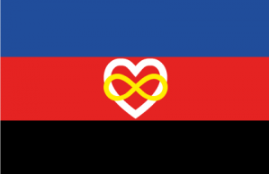 Die Polyamory Pride Flagge repräsentiert die Polyamorie, eine Beziehungsform, bei der Menschen gleichzeitig romantische oder sexuelle Beziehungen zu mehr als einer Person haben, mit dem Wissen und Einverständnis aller Beteiligten. Die Flagge besteht in der Regel aus den Farben blau, rot und schwarz.